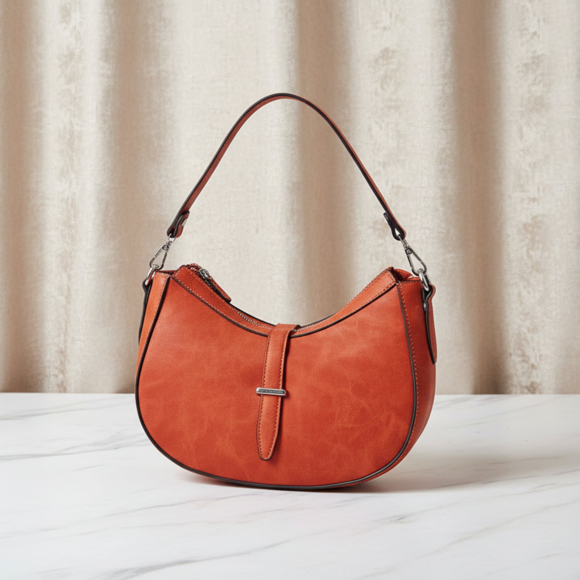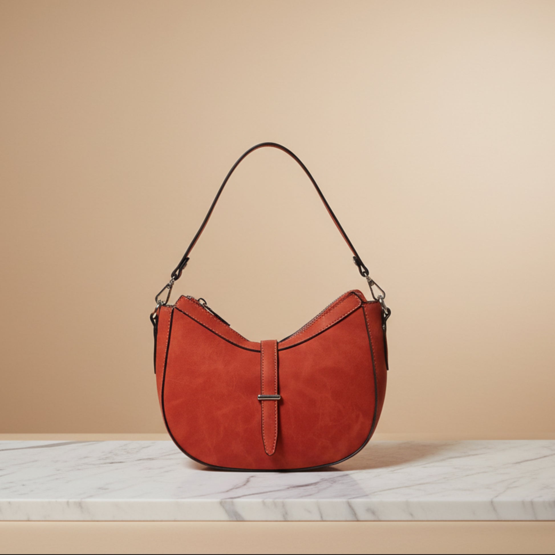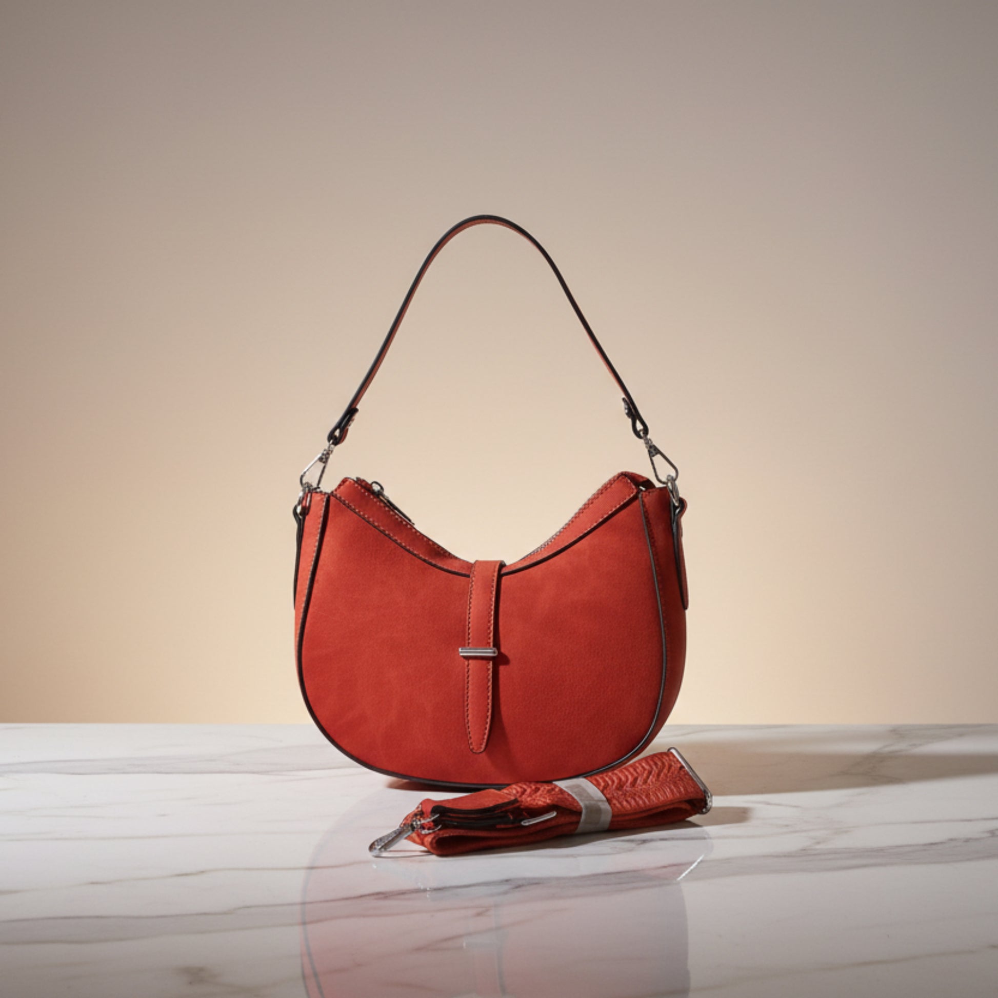 BORSA A MEZZALUNA SCAMOSCIATA ARANCIONE CON DOPPIA TRACOLLA REMOVIBILE