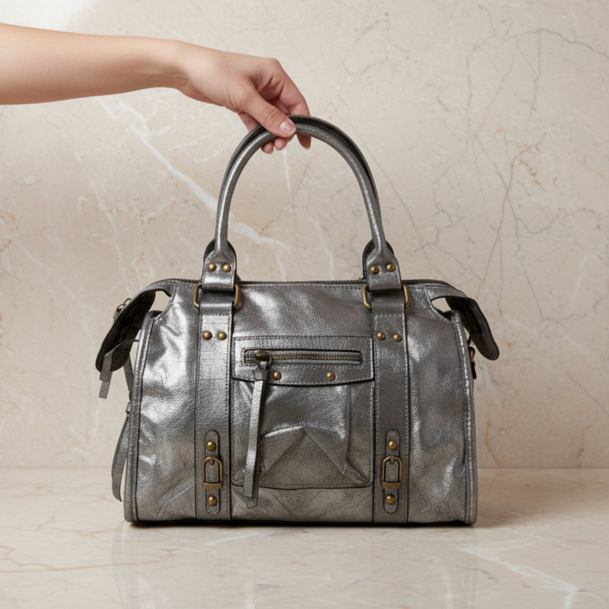 Questa borsa donna argento di tendenza è l'accessorio perfetto per valorizzare qualsiasi outfit, dal look quotidiano all'uscita serale. Il suo design moderno con finitura metallica dona luce ed eleganza, rendendola ideale per chi ama distinguersi con stile.