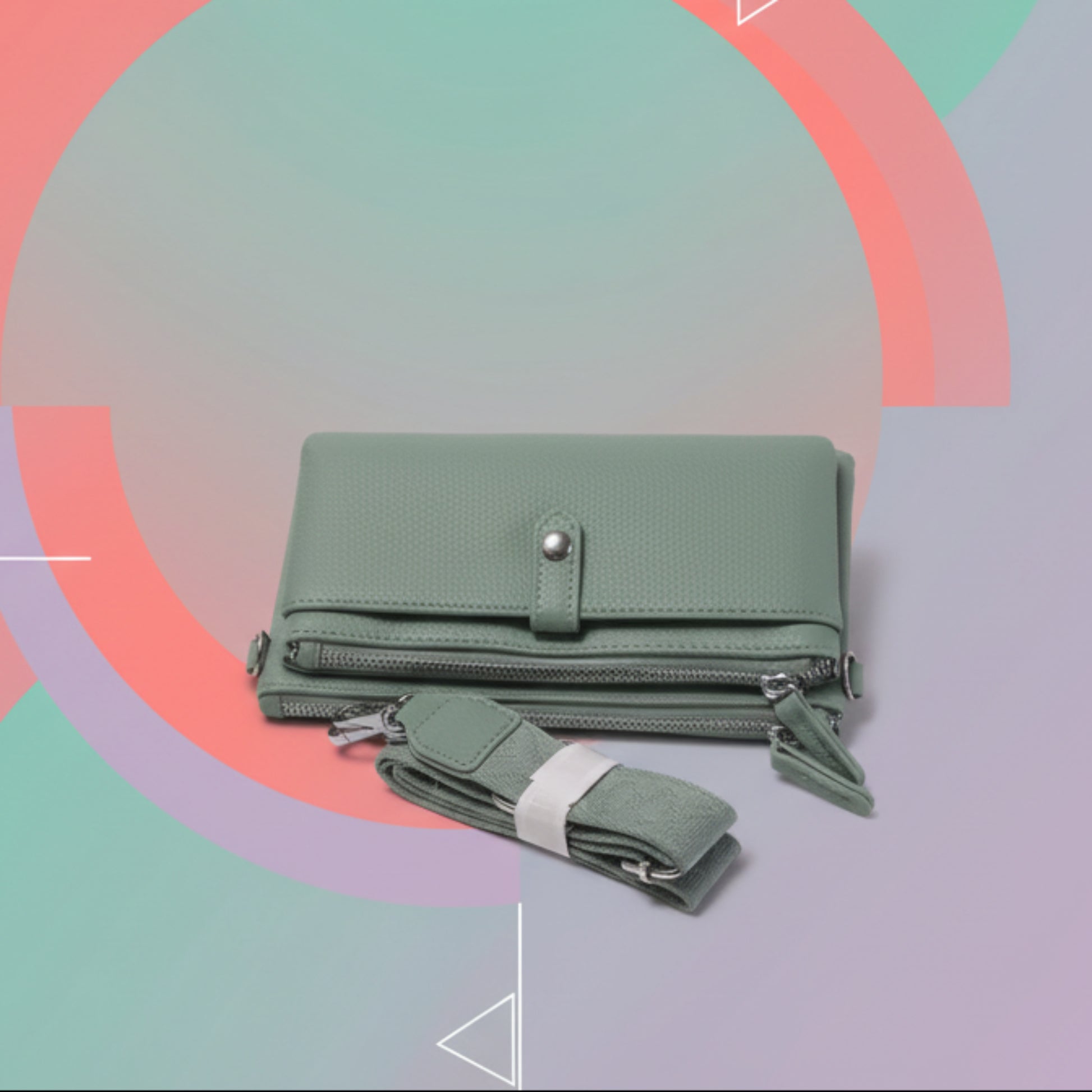 PORTAFOGLIO MINI BORSA DONNA MULTITASCHE VERDE O ROSA CON TRACOLLA REMOVIBILE